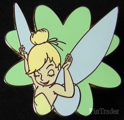 | This pin has Tinker Bell with her eyes closed in a green flower. She is stretching as if she just woke up from a nap. Pin 3 of 3 in the series. |