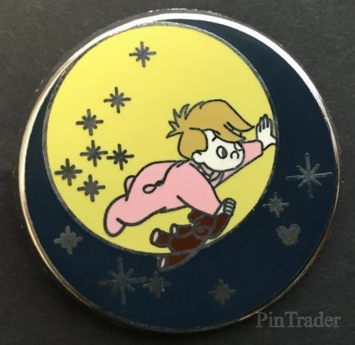 | This series features a round pin with the night sky and a full moon with the characters from the movie Peter Pan in flight in front of the moon. This one features Michael. |