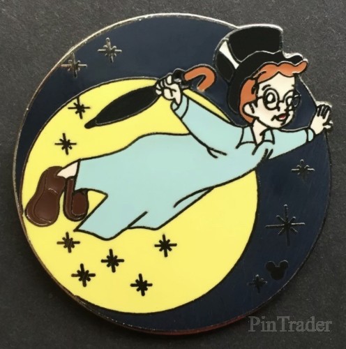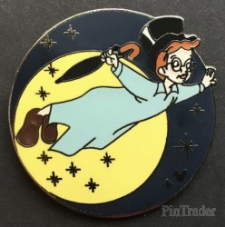 | This series features a round pin with the night sky and a full moon with the characters from the movie Peter Pan in flight in front of the moon. This one features John. |