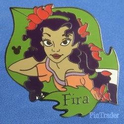 | Fira is pictured on a green leaf shaped pin. Her name is printed at the bottom on a green leaf. |