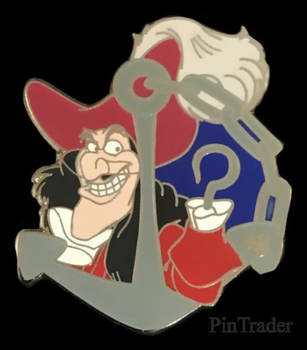 | Captain Hook, from Peter Pan, poses behind an anchor. |