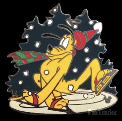 | Features Pluto ice skating with a red and green scarf and hat. |