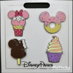 | From Shop Disney: Disney Parks Food Icons Pin Set Item No. 7511057372077P This set will make a sweet addition to your Disney Pin collection. This colorful set of four pins is inspired by some of the delicious treats available at the Parks and will make you hungry for your next trip. Magic in the details • Created especially for Walt Disney World Resort and Disneyland Resort • Set of four Disney Parks food icon pins • Set includes Mickey Ice Cream Bar, Pineapple Swirl, Minnie Mouse Ice Cream Cone, and Mickey Mouse Donut • Enamel cloisonne • Silvertone finish • Mickey icon pin back • Part of the Disney Parks Food Icons Collection The bare necessities • Metal / enamel • Minnie Cone: 1 1/4'' H x 1'' W • Mickey Popsicle: 1 1/4'' H x 9/10'' W • Mickey Donut: 1'' H x 1 1/4'' W • Mickey Cup: 1 1/4'' W x 4/5'' W • Card: 3 1/2'' x 3 1/2'' • Imported |