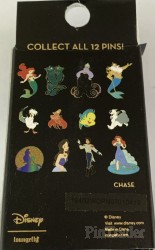 | Description of the set / Title on Box Lunch website: Loungefly Disney The Little Mermaid Blind Box Enamel Pin - BoxLunch Exclusive Details: Look at this trove of pins inspired by Disney's The Little Mermaid! Assortment of 12 features Ariel, Ursula, Prince Eric, Flotsam, Jetsam, Sebastian, Flounder, Scuttle, Vanessa, King Triton, and Max. There's a chase version of Ariel in a sparkly purple dress, too! Which one will you get? It's a surprise! Sorry, no choice or returns. A BoxLunch Exclusive! • Enamel • Imported |