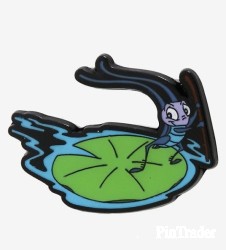 | This pin from Loungefly features Cri-Kee from Mulan sitting on the edge of a lily pad. |