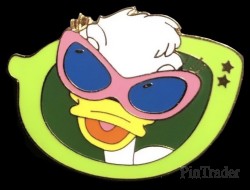 | This pin shows Daisy Duck wearing sunglasses, while being in sunglasses. |