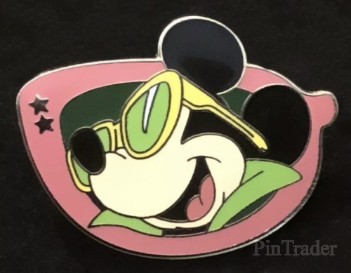 | This pin shows Mickey Mouse wearing sunglasses, while being in sunglasses. |
