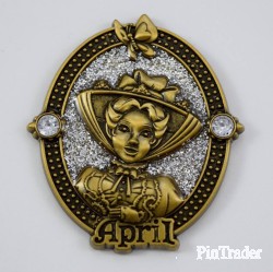 | This open edition pin features Mary Poppins from Walt Disney's "Mary Poppins." It celebrates the birth month of April and features two birthstones surrounding Mary Poppins. A butterfly is on top of the oval shaped pin and the bottom says the month "April." The pin is elegantly wrapped in a gold colored box with pink ribbon. Part of a series of twelve pins, featuring princesses and other female characters from Disney's movies. |