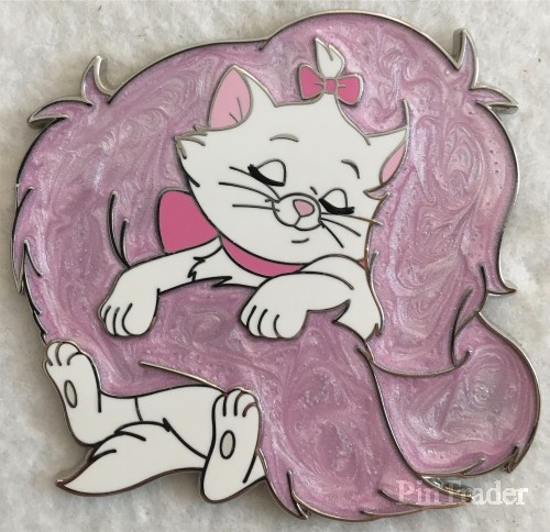 | Marie from Disney's "The Aristocats." She is wrapped in a pink boa. This pin was sold at the D23 2019 Expo in Anaheim, California at Mickey's of Glendale pop-up shop. |