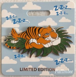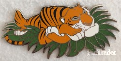 | Shere Khan is the tiger from Walt Disney's "The Jungle Book." He is sleeping on a bed of leaves. This pin was sold at the D23 2019 Expo in Anaheim, California at Mickey's of Glendale pop-up shop. |