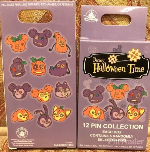 | Unopened box contains 5 random pins. The pins are Disney characters as pumpkins. The set consists of 12 characters: • Gelatoni • Cookie • Duffy • ShellieMay • Stella Lou • Goofy • Pluto • Mickey Mouse • Minnie Mouse • Donald Duck • Daisy Duck • Chip |