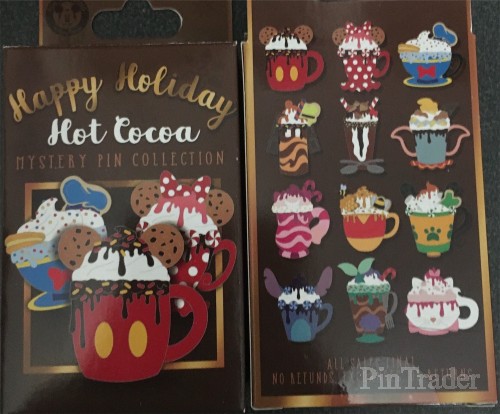 | Two pins per box. A flurry of Disney characters toast the holidays in the form of Hot Cocoa mugs in this mystery pin pack. Each blind pack contains two randomly selected cloisonné pins from a possibility of 12 different designs. Sweet! Created especially for Walt Disney World Resort and Disneyland Resort. |