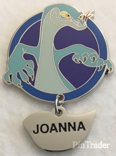 | Joanna from The Rescuers Down Under. Joanna the Goanna is Percival McLeach's pet monitor lizard and the secondary antagonist of The Rescuers Down Under. She appears on this pin with her name on a dangle underneath her. |