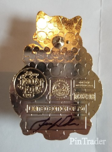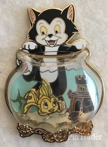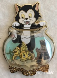 | Item #9 in Pin Celebration Catalog designed by Jes Willis. Pin features Figaro & Cleo from Pinocchio, pin-on-pin & an acrylic dome. Dimensions 1.4"w x 2"h. |