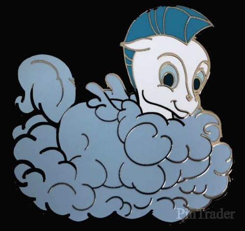 | This pin features a baby Pegasus, sitting among the clouds, from the Disney movie "Hercules." This set was the parting gift to event attendees of the Fairy Tails Event. Each pin is a character that was given as a gift in their respective movie. |