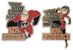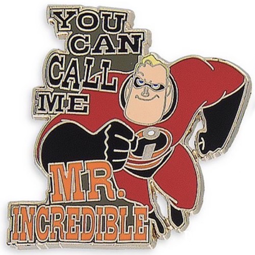 | This is 1 of a 2-pin set featuring Mr. Incredible running. He is in his super suit with his mask on with “You Can Call Me Mr. Incredible” in orange letters. |