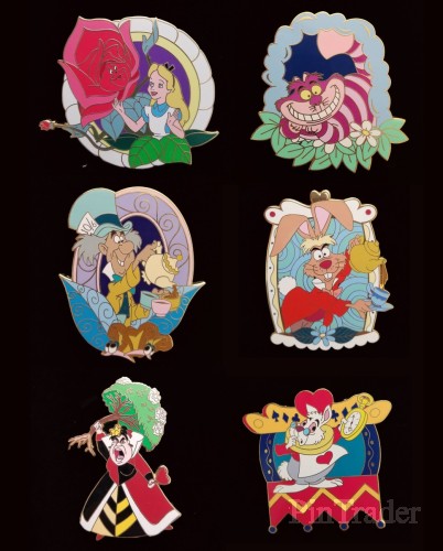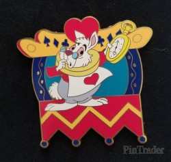 | The White Rabbit is shown in his court clothes holding his pocket watch in his left hand. Tumble down to the topsy-turvy world of our 6-Pc. Alice in Wonderland Pin Set. Visit the Garden of Live Flowers, the Mad Tea Party and the Queen's croquet grounds without ever having to leave your lapel. This Disney pin makes a perfect Un-Birthday gift 364 days of the year! Imported. Set includes 6 Disney pins: • Alice • The Cheshire Cat • The Mad Hatter • The March Hare • The Queen of Hearts • The White Rabbit |