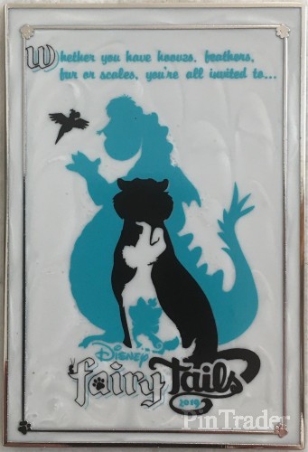 | Item #2 in Pin Celebration Catalog designed by Res Willis. Pin features screenprint silhouettes of Elliot (Pete's Dragon), Iago & Rajah (Aladdin), Tramp (Lady & the Tramp), Marie (Aristocats) & Pascal (Tangled). Pin dimensions 1.18"w x 1.75"h. Pin has pearlized fill. |