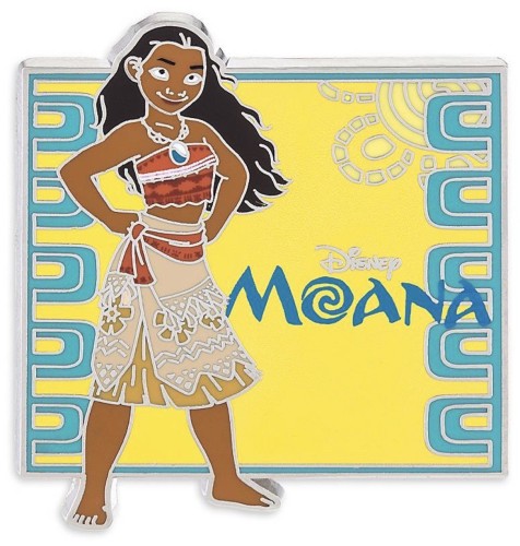 | Moana is posing with her hands on her hips, on a yellow background with blue Polynesian themed edges. |