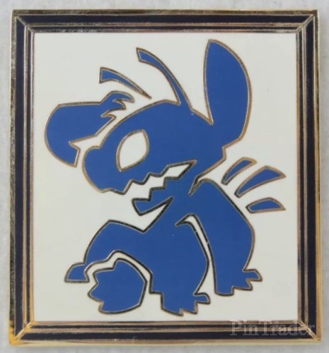 | "Blue Dude" c. 2006 Stitch's distinctive silhouette graces a tribute to Henri Matisse's 1952 work "Blue Nude I" on this striking gold-finished collector's pin. One in a series celebrating classic art with a Disney twist, this inspired collectible is a Disney Auctions exclusive in a limited edition of 100 oversize pins |