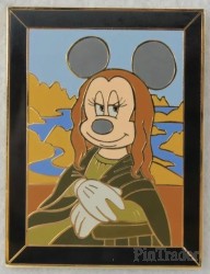 | Minnie Mouse sits in for one of the most widely recognizable subjects in art history in this distinctive gold-finished collector's pin titled "Mona Minnie." This parody of Leonardo da Vinci's 1503-06 portrait "Mona Lisa" ("La Gioconda") is one in a series of "framed" oversize pins that celebrate classic art with a Disney twist. Sold as 25 individual pins and 75 sets. |