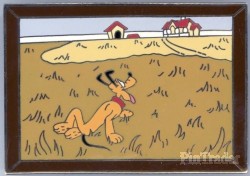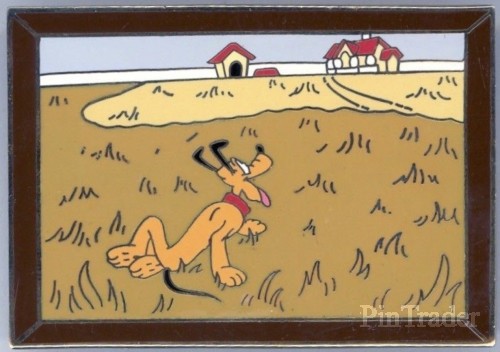 | Reclining in a golden meadow, Pluto looks homeward on this delightful gold-finished collector's pin that pays homage to Andrew Wyeth's romantic 1948 painting "Christina's World," one in a series of "framed" oversize pins that celebrate classic art with a Disney twist. Sold as 25 individual pins and 75 sets. |