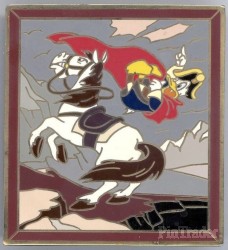 | Donald Duck has trouble holding onto the reins on this humorous gold-finished collector's pin, a parody of neoclassicist Jacques-Louis David's 1800 portrait "Le Premier Consul Franchissant," also known as "Bonaparte at Mont St. Bernard." One in a series celebrating classic art with a Disney twist, this inspired collectible is a Disney Auctions exclusive in a limited edition of 100 oversize pins. |