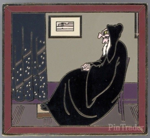 | Snow White's Hag sits in for James Abbot McNeill Whistler's mother on this evocative gold-finished collector's pin, a parody of his celebrated 1871 canvas titled "Arrangement in Grey and Black: Portrait of the Painter's Mother." One in a series celebrating classic art with a Disney twist, this inspired collectible is a Disney Auctions exclusive in a limited edition of 100 oversize pins. |