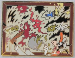 | Goofy makes a splash on the art scene à la Jackson Pollock's abstract expressionist piece "Untitled, 1942-44" on this vivid gold-finished collector's pin. One in a series celebrating classic art with a Disney twist, this inspired collectible is a Disney Auctions exclusive in a limited edition of 100 oversize pins. |