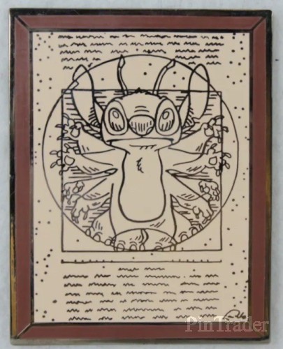 | Extra limbs are nothing new to Stitch, who stands in as the model for Leonardo da Vinci's "Vitruvian Man" illustration (c. 1490) on this fanciful gold-finished collector's pin. One in a series celebrating classic art with a Disney twist, this inspired collectible is a Disney Auctions exclusive in a limited edition of 100 oversize pins. |