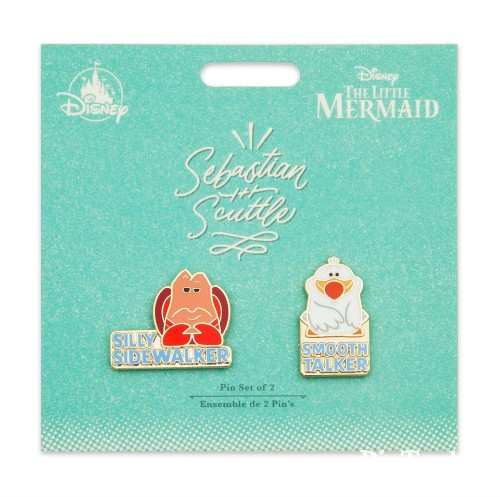 | Description from Shop Disney: Item No. 6505036284600P Celebrate the most memorable screen pairings ever with our collection of Disney Duos enamel pin sets. Featuring Sebastian and Scuttle from The Little Mermaid, the set will inspire you to make your real life friendships just as dynamic as theirs. Magic in the details • Set of two enameled cloisonne pins • Includes Sebastian and Scuttle from The Little Mermaid • Sebastian: ''Silly Sidewalker'' • Scuttle: ''Smooth Talker'' • Goldtone finish • Mickey icon pinbacks • Comes on card • Part of the Disney Duos Collection The bare necessities • Metal / enamel • Sebastian: 1'' H x 1 1/4'' L • Scuttle: 1 1/4'' H x 3/4'' L • Imported |