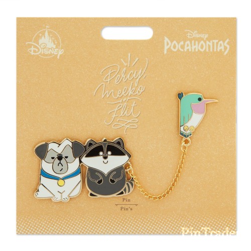 | Description from Shop Disney: Item No. 6505036284598P Celebrate the most memorable duos ever brought to the screen with our collection of Disney Duos enamel pin sets. Featuring Percy, Meeko and Flit from Pocahontas, these pins will inspire you to make your real life friendships just as dynamic as theirs! Magic in the details • Set of two enameled cloisonne pins • Includes Percy, Meeko, and Flit from Pocahontas • Flit pin attached with chain • Goldtone finish • Mickey icon pinbacks • Comes on card • Part of the Disney Duos Collection The bare necessities • Metal / enamel • Percy and Meeko: 1 1/4'' H x 2'' L • Flit: 1'' H x 3/4'' L • Chain: 2'' • Imported |