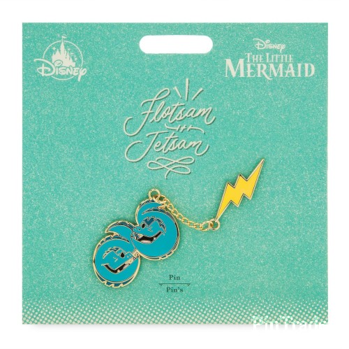 | Description from Shop Disney: Item No. 6505036284602P Celebrate the most memorable screen pairings ever with our collection of Disney Duos enamel pin sets. Featuring Flotsam and Jetsam from The Little Mermaid, the set will inspire you to make your real life friendships just as dynamic as theirs. Magic in the details • Set of two enameled cloisonne pins • Includes Flotsam and Jetsam from The Little Mermaid • Electric bolt pin attached with chain • Goldtone finish • Mickey icon pinbacks • Comes on card • Part of the Disney Duos Collection The bare necessities • Metal / enamel • Flotsam and Jetsam: 3/4'' H x 1 1/2'' L • Bolt: 1/4'' H x 1'' L • Chain: 1'' • Imported |