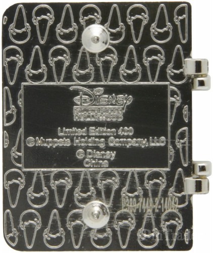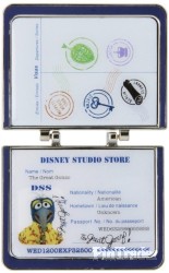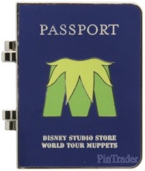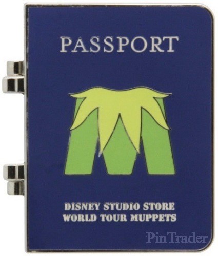 | The inside features a photo of the character with their name, nationality, place of residence and a passport number on the lower portion, and some visa stamps for Madrid, Dublin, London, Berlin Germany and 'Muppets World Tour' on the upper portion. This pin features The Great Gonzo, and has a blue color theme. Released at the Disney Soda Store Hollywood for the theatrical release of Disney's Muppets Most Wanted, this is part of a series of 5 pins featuring passports of the main characters in the movie. They are hinged pins with the Muppets 'M' logo on the out side and the word Passport above it, and 'Disney Studio Store World Tour Muppets' underneath it. The same serial number (P389-7448-2-14042) is etched on the back of each pin in the set. |