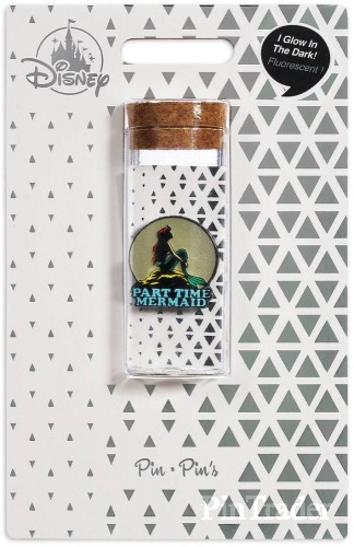 | From shopDisney: Ariel is perched atop a rock on the memorable poster design for The Little Mermaid featured on this pin. Her dreams for life on land are echoed in the ''Part Time Mermaid'' message, while the glass tube container makes this a full time keepsake. Magic in the details • Includes pin and glass tube with cork lid • Pin comes on decorative card with foil design • Pin-on-pin design • Enamel cloisonne • Pewter finish • Mickey icon pin back The bare necessities • Pin: metal / enamel • Tube: glass / cork • Pin: 1'' H • Tube: 3'' H x 1 1/4'' Diameter • Imported |