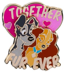 | From shopDisney: The canine companions Lady and the Tramp are featured on this romantic pin. The couple's affection for each other is writ large as they vow to remain ''Together Fur Ever'' on this pin-on-pin design which comes in a keepsake glass tube with cork lid. Magic in the details • Includes pin and glass tube with cork lid • Pin comes on decorative card with foil design • Pin-on-pin design • Enamel cloisonne • Goldtone finish • Mickey icon pin back The bare necessities • Pin: metal / enamel • Tube: glass / cork • Pin: 1 1/8'' H • Tube: 3'' H x 1 1/4'' Diameter • Imported |