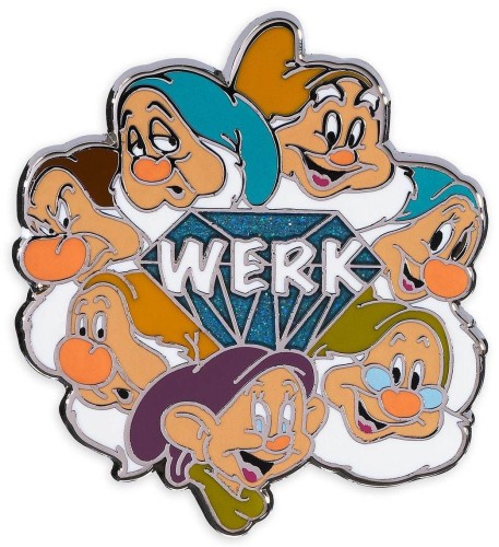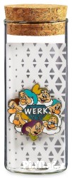 | From shopDisney: The seven little diamond miners surround a dazzling jewel on this pin inspired by Snow White and the Seven Dwarfs. Grumpy, Happy, Dopey and Co. are small enough to fit inside the keepsake glass tube that showcases this pin. Magic in the details • Includes pin and glass tube with cork lid • Pin comes on decorative card with foil design • Enamel cloisonne • Silvertone finish • Mickey icon pin back The bare necessities • Pin: metal / enamel • Tube: glass / cork • Pin: 1'' Diameter • Tube: 3'' H x 1 1/4'' Diameter • Imported |
