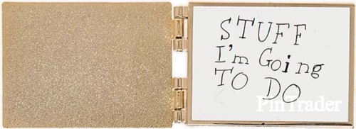 | From ShopDisney.com: Your collection has no way to go but Up with the addition of this clever cloisonné pin set featuring a hinged ''My Adventure Book'' pin and Carl's house charm dangling from a balloon pin. Magic in the details * Set of two collectible pins * Hinged ''My Adventure Book'' pin opens to reveal ''Stuff I'm going to do'' page * Balloons pin with dangling Fredricken house * Enameled cloissonné * Goldtone finish * Mickey icon pin backs * Comes on card * Inspired by Disney and Pixar's Up (2009) The bare necessities * Metal / enamel * Pins: up to 1 3/4'' H or W * Imported Item No. 465054732121 |