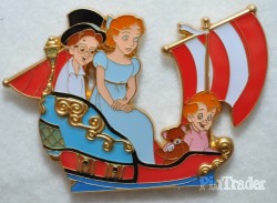 | This series of 9 pins were released in the Mickey of Glendale's store at the 2015 D23 Expo. Each pin features different characters on the Peter Pan's Flight attraction. The back of the pins have the Sorcerer hat waffle pattern and read "Walt Disney's Imagineering EXCLUSIVE Limited Edition 300 cDisney China. All pins in the series have the number N556-6633-4-15170 on the back. |