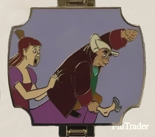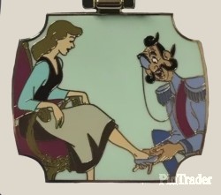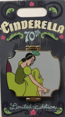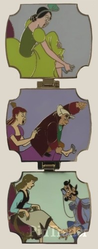 | This Z-fold hinged pin features Drizella, Anastasia, and Cinderella in different scenes when they are trying on the glass slipper. Cinderella is pictured with the Grand Duke. This pin was first released at the Pin Trading Nights at Disneyland Resort (DLR) and Walt Disney World (WDW) on February 20, 2020. Leftover pins were released to the public at a later date. |
