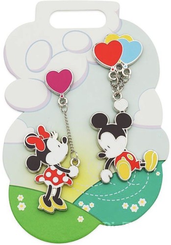 | Troubles drift away along with Mickey and Minnie Mouse as posed for this two-piece cloisonné pin set, dangling by silvery chains from heart-shaped balloons. Lift the spirits of someone special with this romantic gift! Magic in the details * Set of two dangler pins * Mickey and Minnie hang by chains from heart-shaped balloon pins * Enameled cloisonné * Silvertone finish * Mickey icon pinbacks * Comes on illustrated backdrop display card The bare necessities * Metal / enamel * Pins hang 2 1/2'' L (including chain) * Card: 4 1/4'' H x 3'' W * Imported |