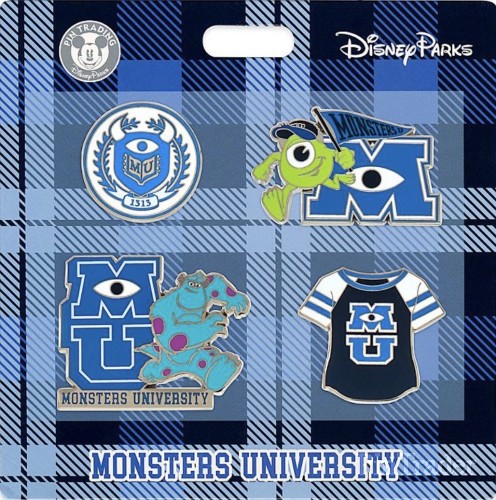 Scream-out your school spirit with this set of four pins featuring the collegiate insignia of Monsters University. These ''MU'' designs are sure to scare-up compliments from the fraternity bros and faculty alike.