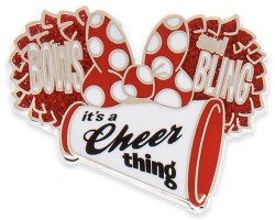 | Bows and bling? It's a cheer thing for Minnie Mouse and her cheerleader BFFs from across the nation. Shake your pom poms for the Disney home team and our collectible pin! Magic in the details * Enameled cloisonné * ''Bows and bling - it's a cheer thing'' text * Glitter accents * Silvertone finish * Mickey icon pin back * Comes on card The bare necessities * Metal / enamel * Pin 1 3/4'' W * Imported |