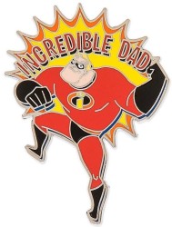 | Power-up any Pixar pin collection with Mr. Incredible! This cloisonné keepsake makes a heroic gift for your ''Incredible Dad'' this Father's Day. Magic in the details * ''Incredible Dad'' text * Enameled cloisonné * Silvertone finish * Mickey icon pin back * Comes on ''To / From'' gift card * Makes a great Father's Day gift * Coordinates with Elastigirl ''Incredible Mom'' Pin, sold separately The bare necessities * Metal / enamel * Pin 2'' H * Card 4 1/4'' H x 2 3/4'' W * Imported |