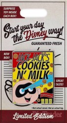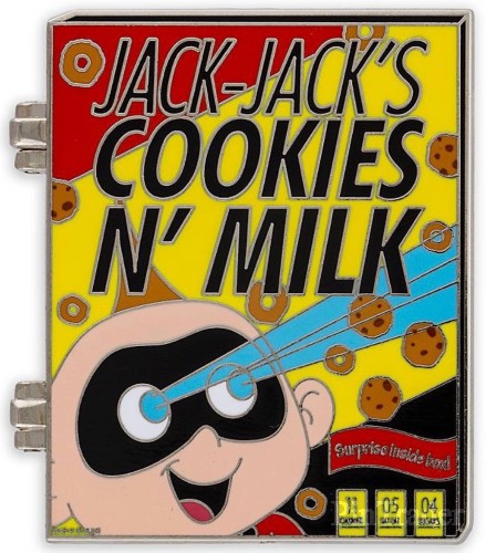 | This limited edition Pixar pin, featuring Jack-Jack of The Incredibles, is designed to replicate a ''Cookies N' Milk'' cereal box with hinged interior. It's part of your complete breakfast collection. Magic in the details * Limited Edition of 4,000 * Enameled cloisonné * Hinged pin-on-pin design is shaped like a cereal box * ''Jack-Jack's Cookie N' Milk'' text * Open to reveal cereal art inside * Silvertone finish * Mickey icon pinbacks * Comes on card * March Pin-of-the-Month in our Cereal Box Series The bare necessities * Metal / enamel * Approx. 2'' H * Imported |