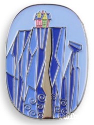 | Description from mondoshop.com: • 1.5" high soft enamel pin designed by DKNG Studios. • Single post on shiny nickel metal with a rubber clutch backing. |
