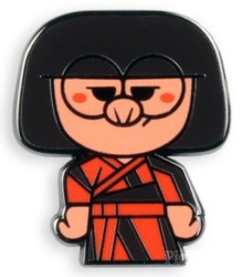| Description from mondoshop.com: • 1.03" high hard enamel pin designed by Andrew Kolb. • Single post on black nickel with a rubber clutch backing. |