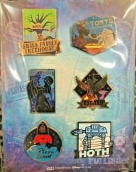 | 2020 Gold Member gift. Fill up your "passport to fun" with this six-pin set, celebrating six milestone anniversaries and created exclusively for this D23 Gold Member Gift by Disney Artist Alex Riegart-Waters. These beautifully finished pins, inspired by vintage travel logos, celebrate Fantasia, Lady and the Tramp, Swiss Family Robinson, Marvel's Valkyrie, Star Wars: Episode V: The Empire Strikes Back, and Toy Story. |